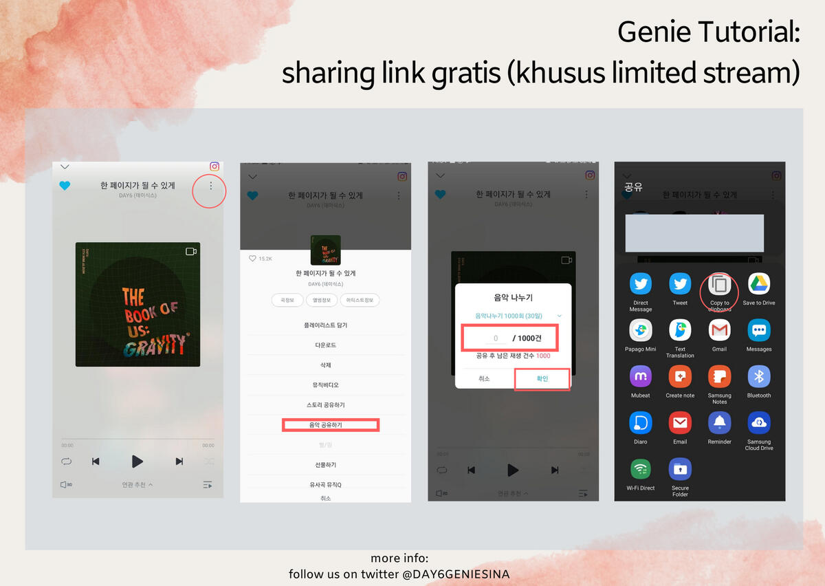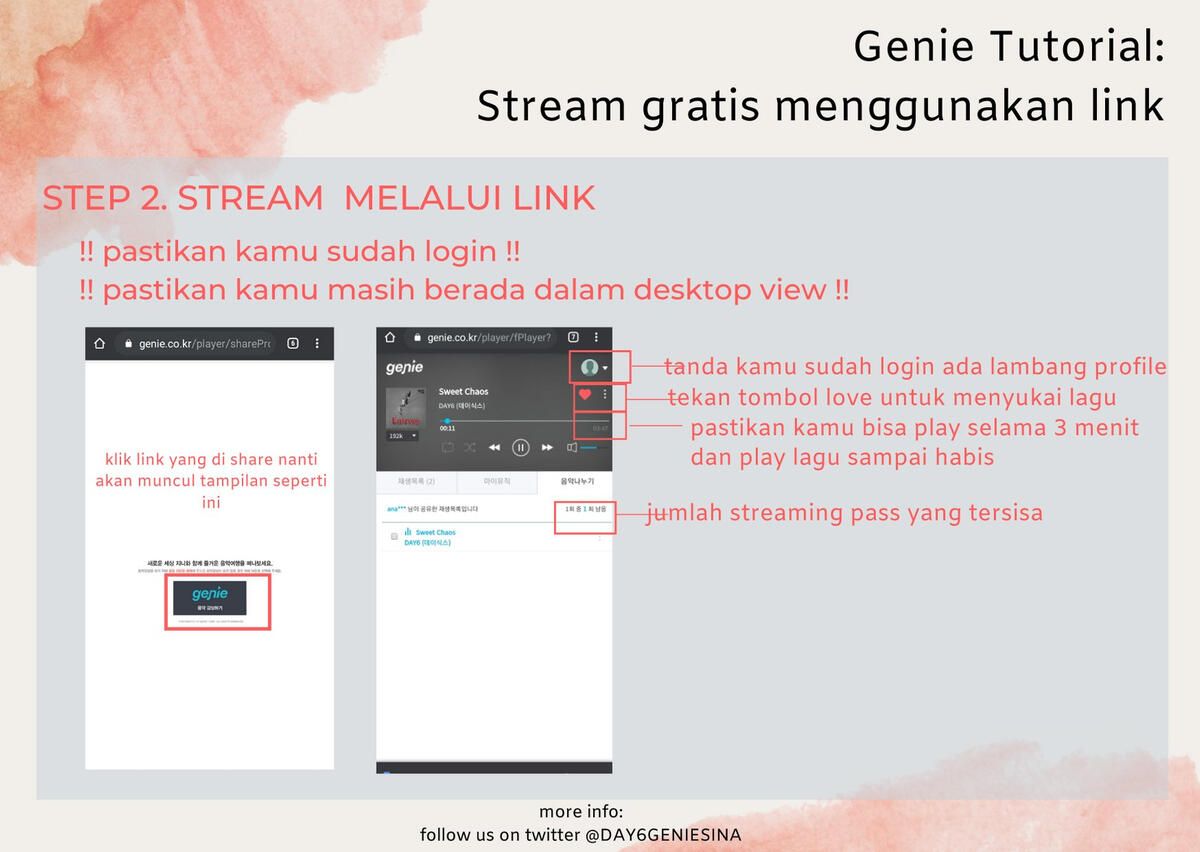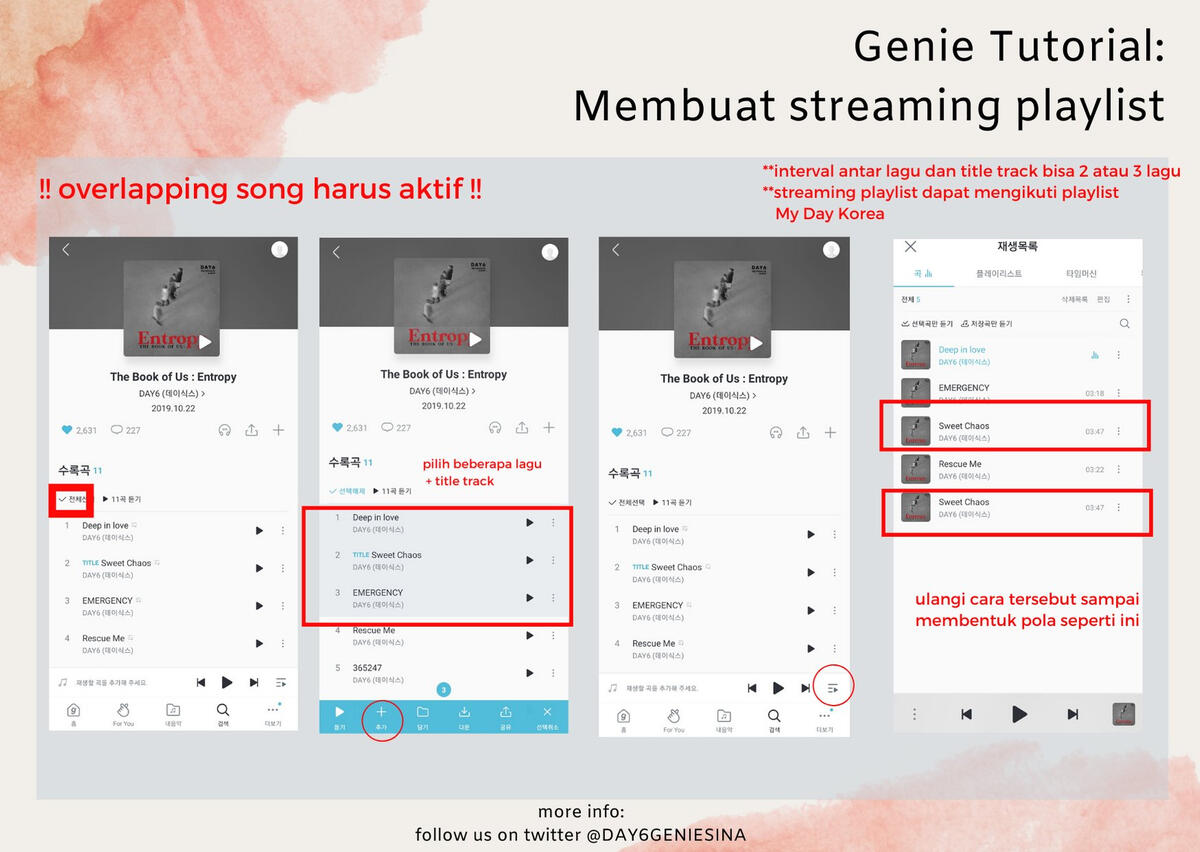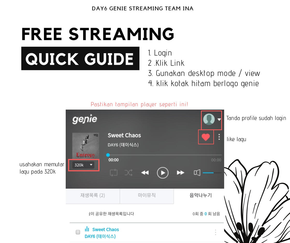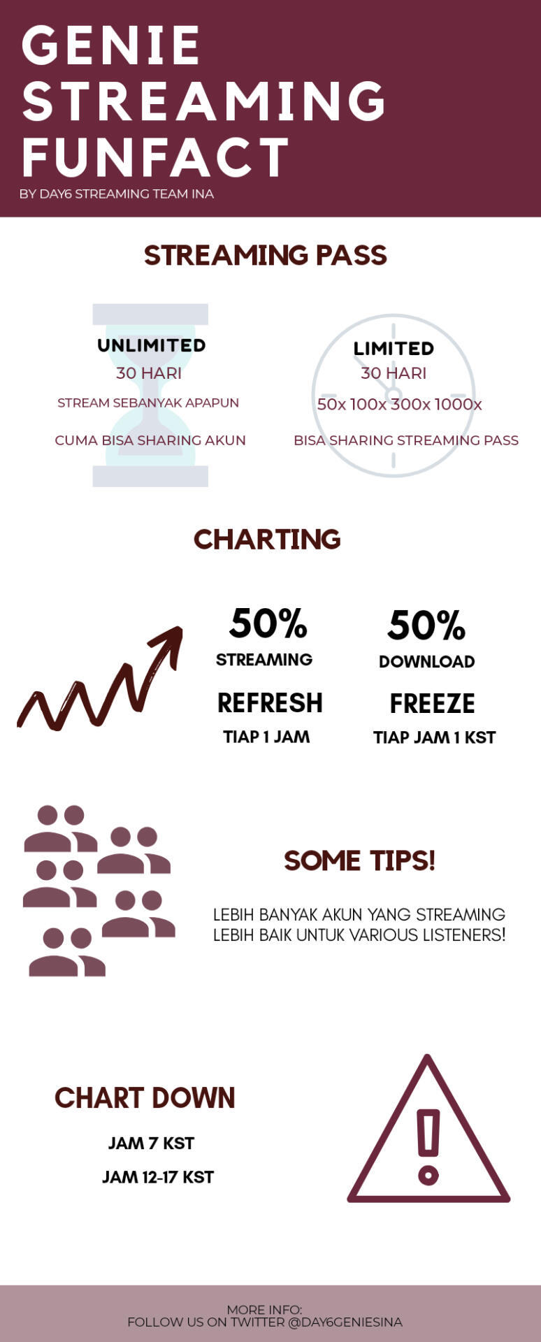 Saat ini DAY6 masih membutuhkan banyak perhatian dari general public atau masyarakat korea. untuk itu tujuan streaming genie kali ini adalah untuk mempertahankan posisi lagu di realtime chart genie, agar lagunya bisa muncul di halaman utama dan menarik perhatian general public. Jadi untuk itu kami harap My Days dapat berpartisipasi dalam streaming project kali ini. Yuk cari tahu lebih lanjut!