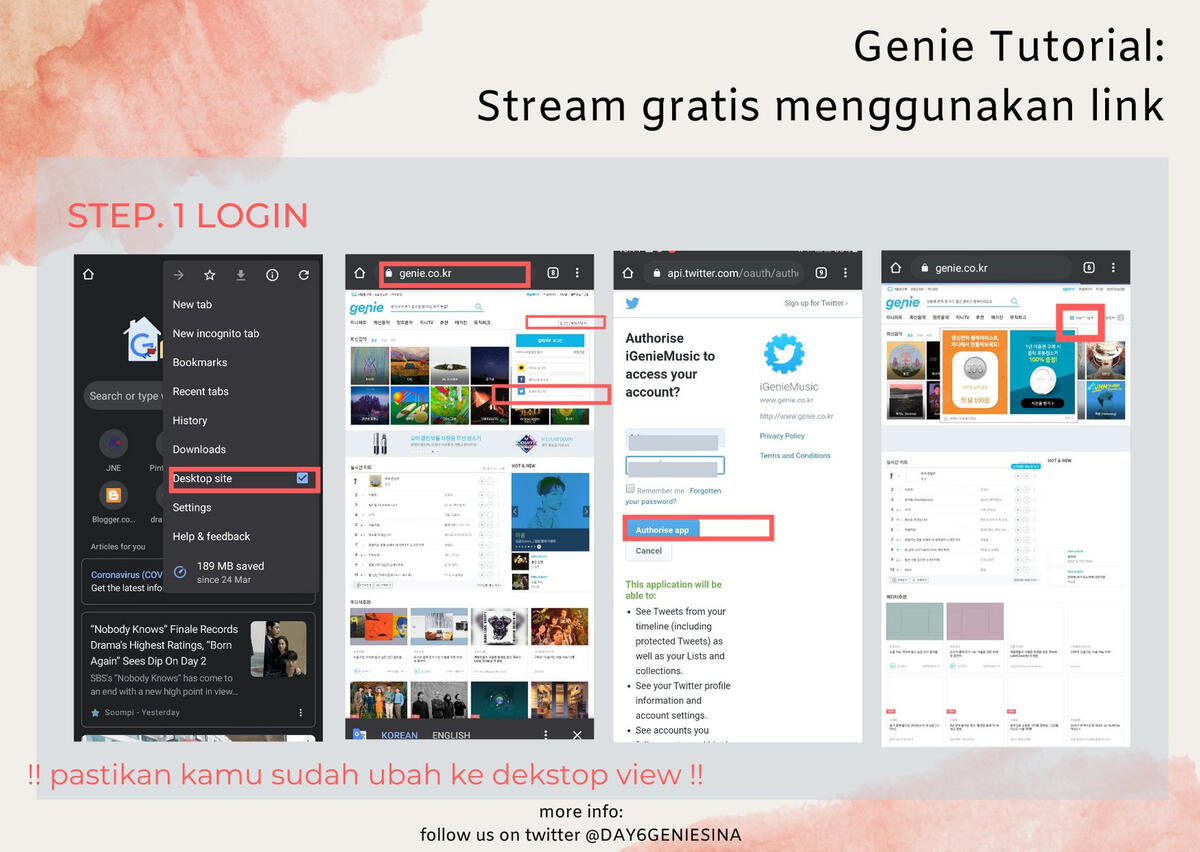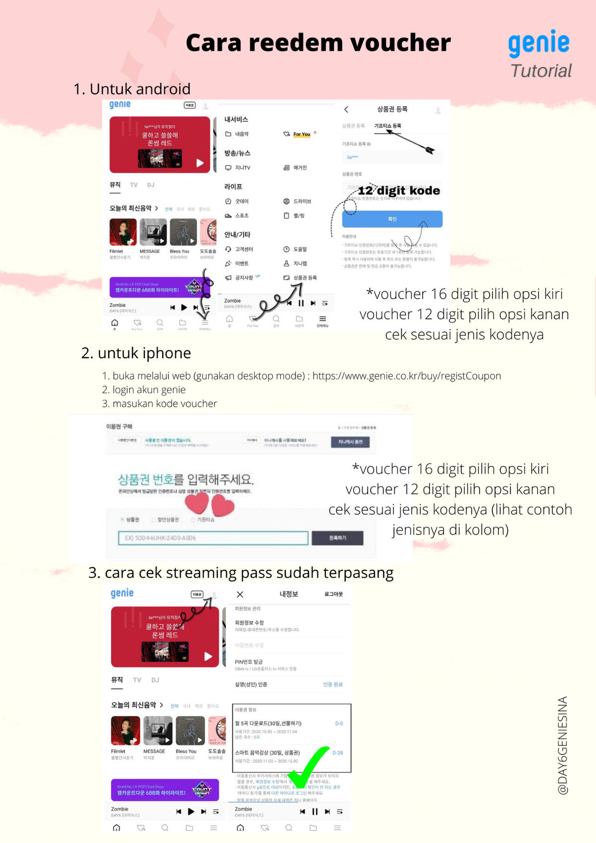 Mulai Januari 2021, sudah tidak bisa register genie tanpa nomor korea. Jika kamu belum memiliki akun, silakan pinjam akun teman atau membeli akun.
